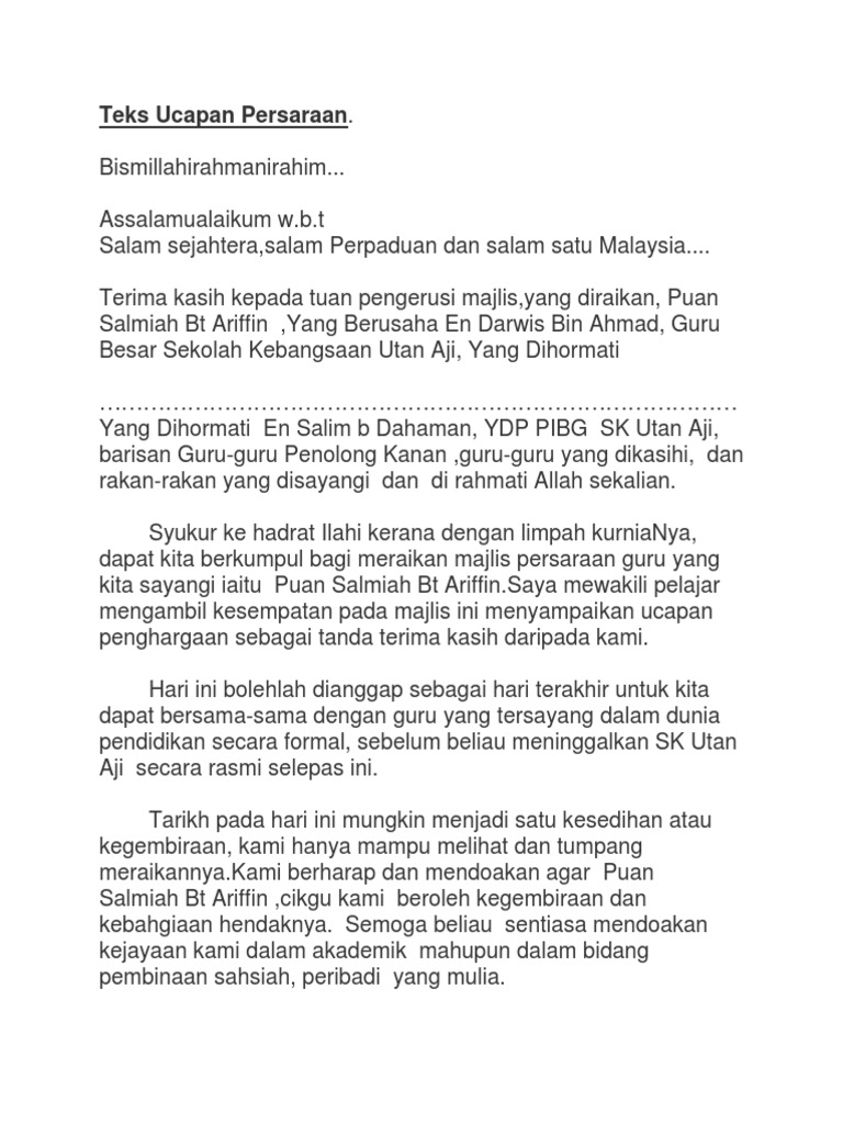 Teks Ucapan Guru Bersara By Ra_Beatrice198 02 Sep, 2022 Post a Comment Teks Ucapan Guru Yang Bersara Teks Ucapan Persaraan Pdf Teks Ucapan Persaraan Pdf Teks Ucapan Persaraan Pdf Teks Ucapan Guru Tuan Badan Nak Bersara Pdf Share No comments for "Teks Ucapan Guru Bersara"